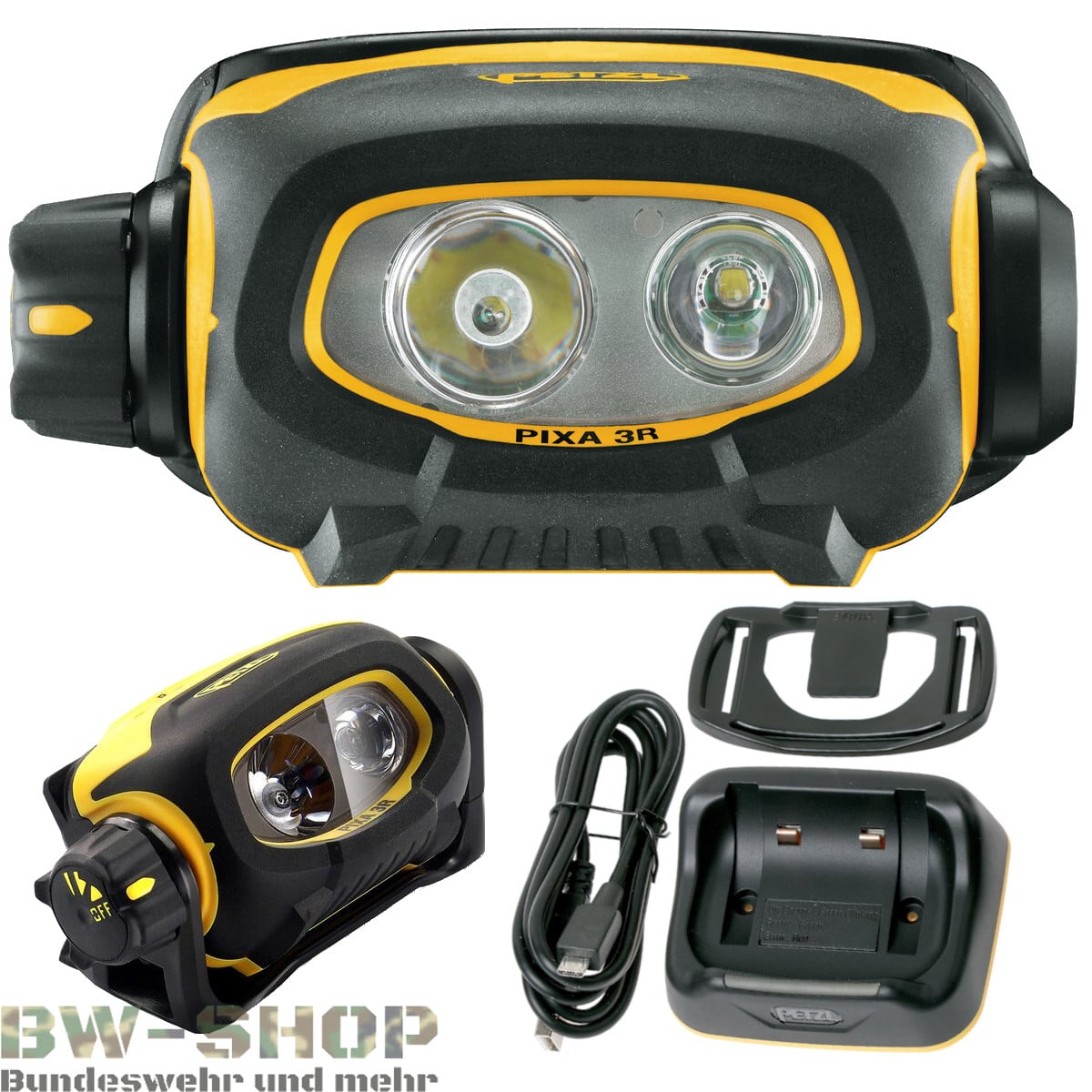 Petzl PIXA 3R Feuerwehr Helmlampe mit Ladestation & Helmhalterung