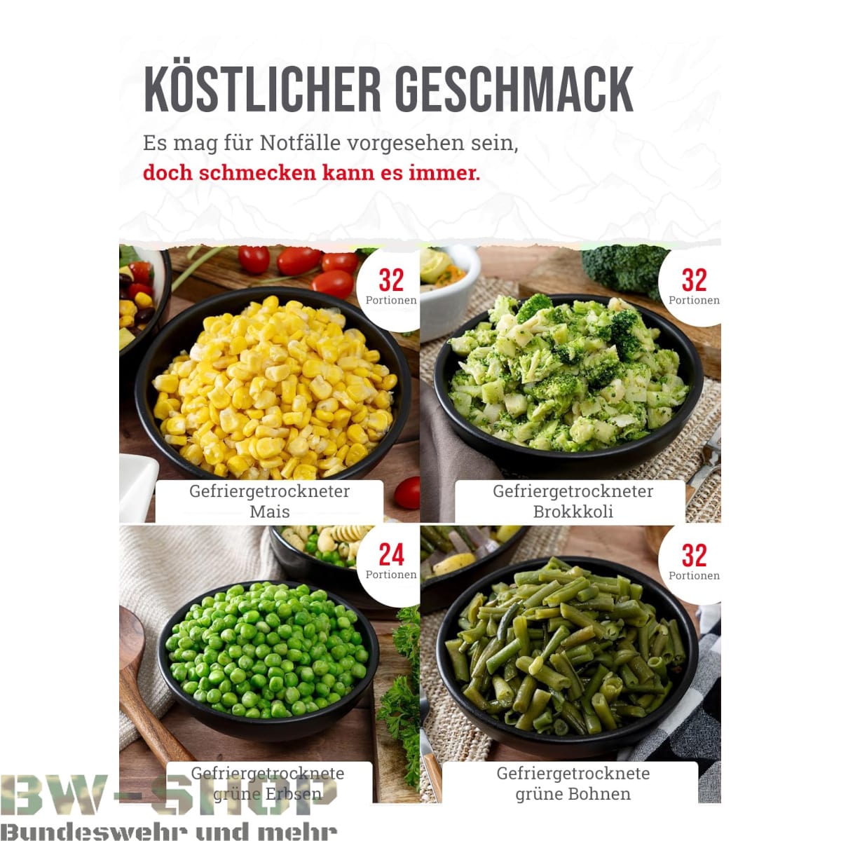 - 120 Portionen frisches, gefriergetrocknetes Gemüse