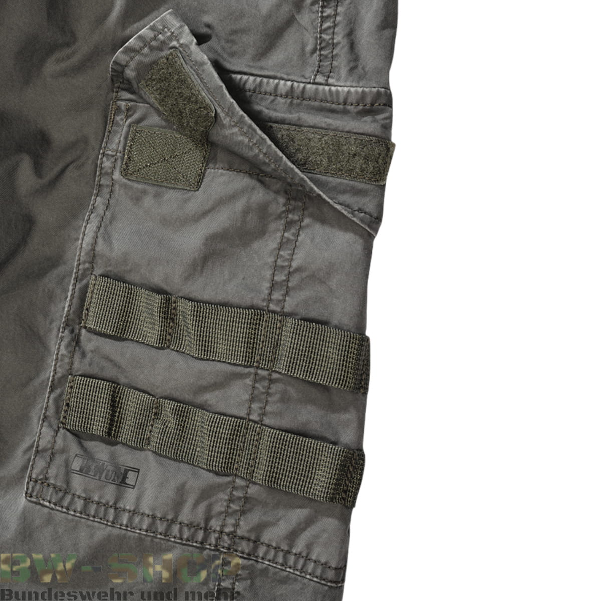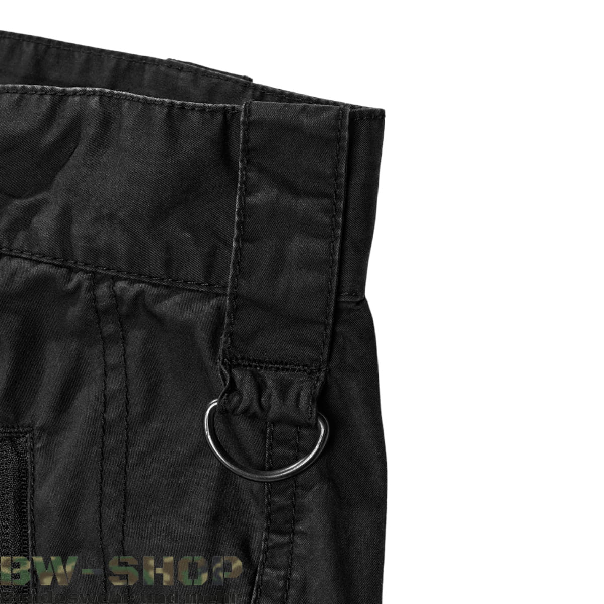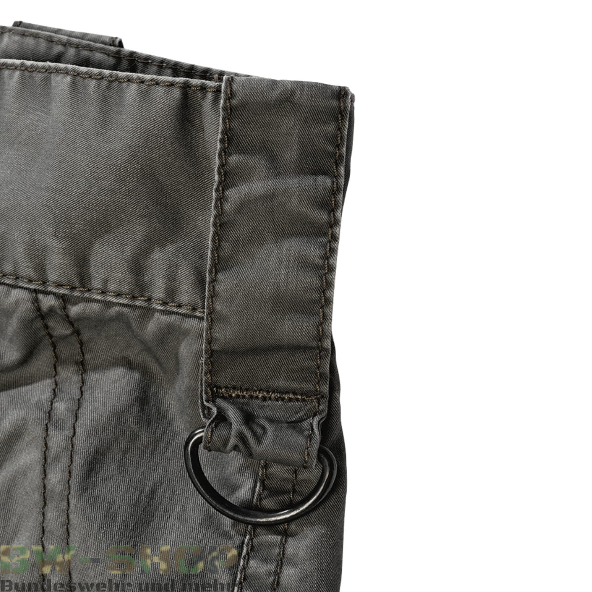 - Klettstreifen an beiden Patten der Beintaschen und eine große Klettfläche an der rechten Beintasche zum Anbringen von Patches