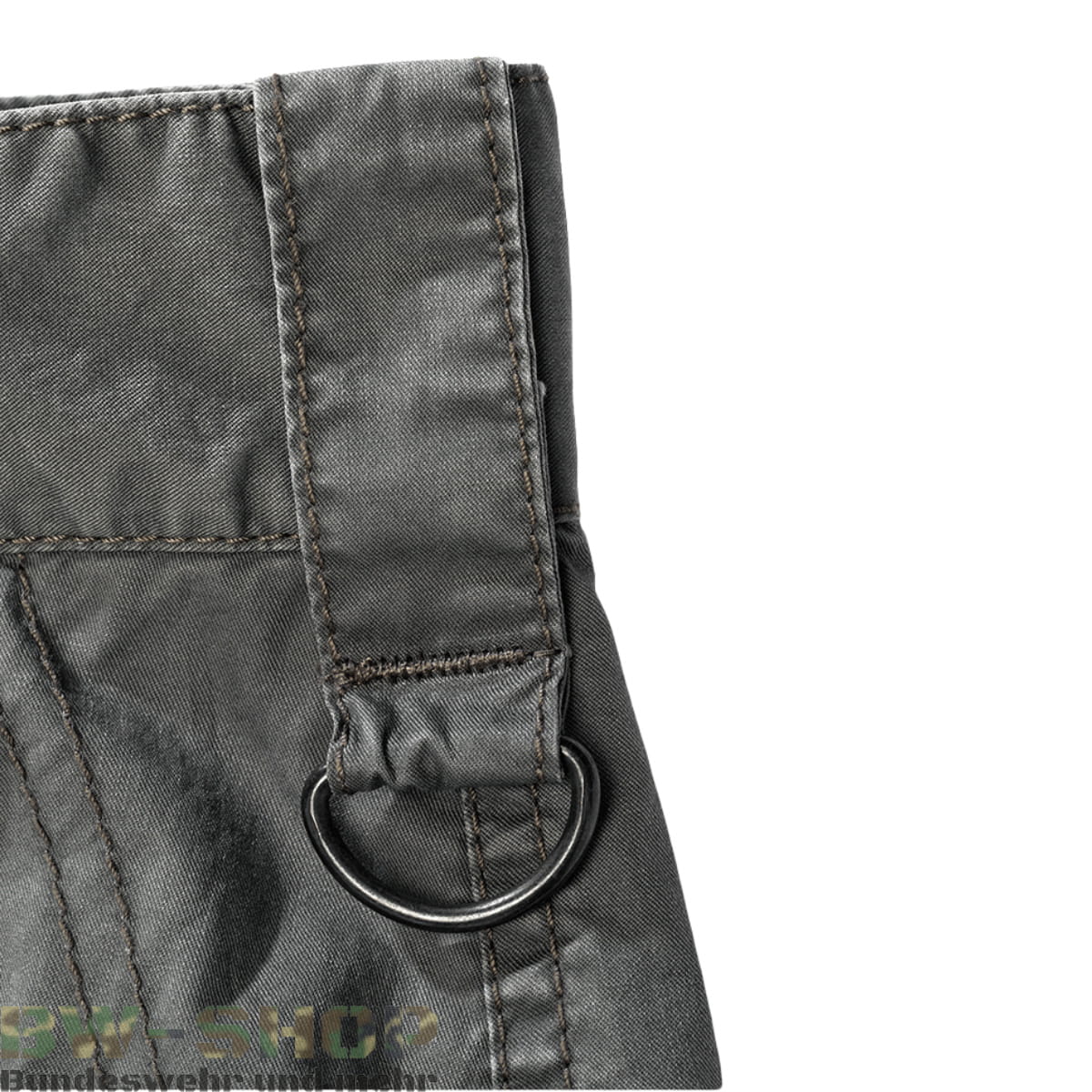 - Klettstreifen an beiden Patten der Beintaschen und eine große Klettfläche an der rechten Beintasche zum Anbringen von Patches