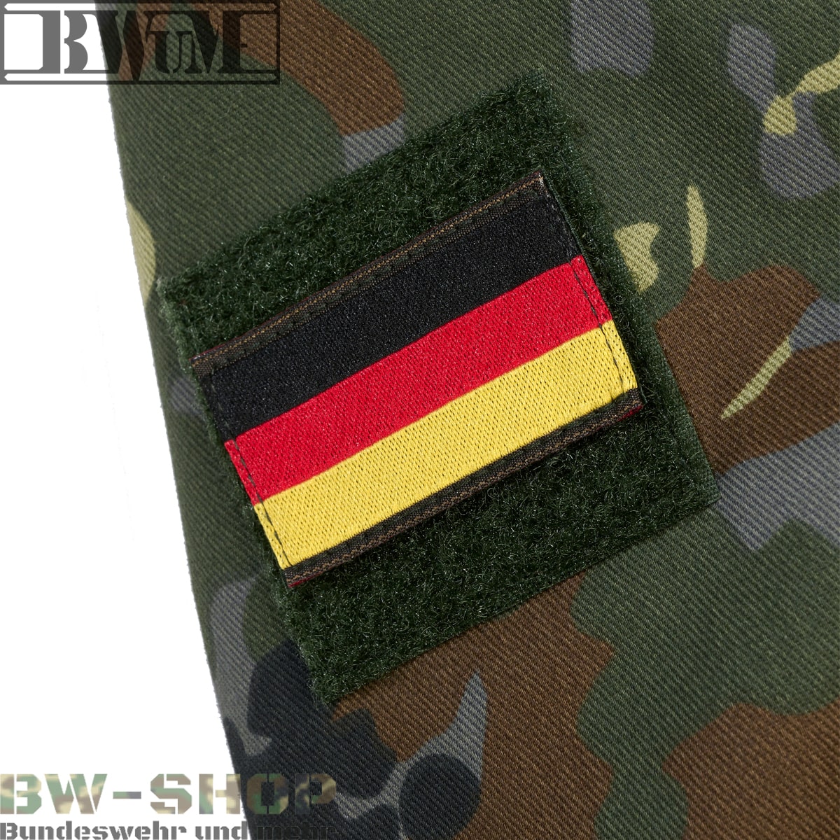 - Klettflächen mit Deutschlandflaggen (Hoheitsabzeichen) auf den Oberarmen
