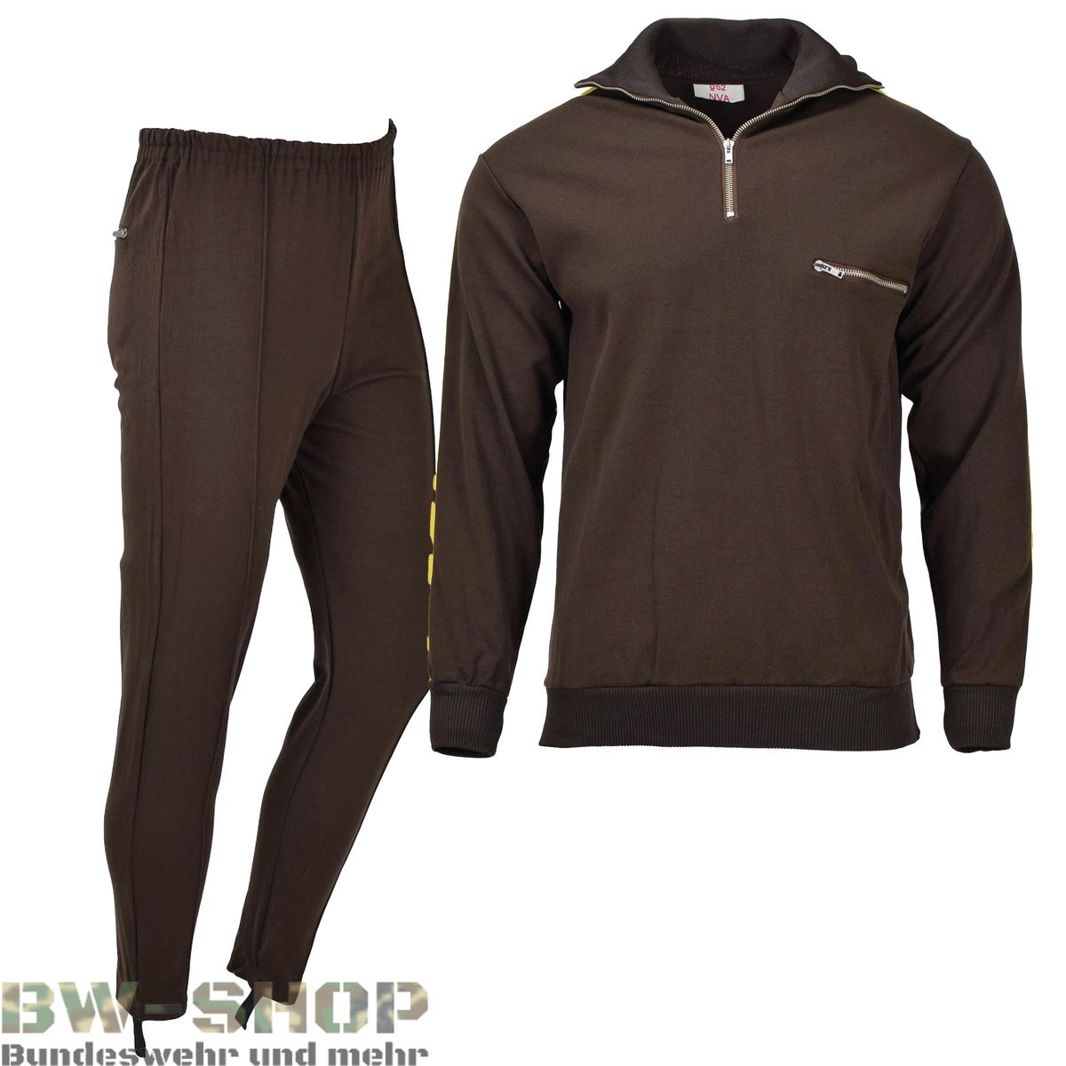 Quasi jeder aus der DDR kennt sie! Die nostalgische und bekannte Sportbekleidung der NVA (Nationalen Volksarmee). Neben guter Qualität steht auch idealer Nutzen für sämtliche Sportaktivitäten nichts mehr im Weg. Im Unterschied zur Ausführung des Offiziers ist der Reißverschluss des Oberteils nicht durchgängig und die Hose weist keine rot-gelben Streifen auf. Hier erwerben Sie das Original aus ehemaligen NVA Beständen.