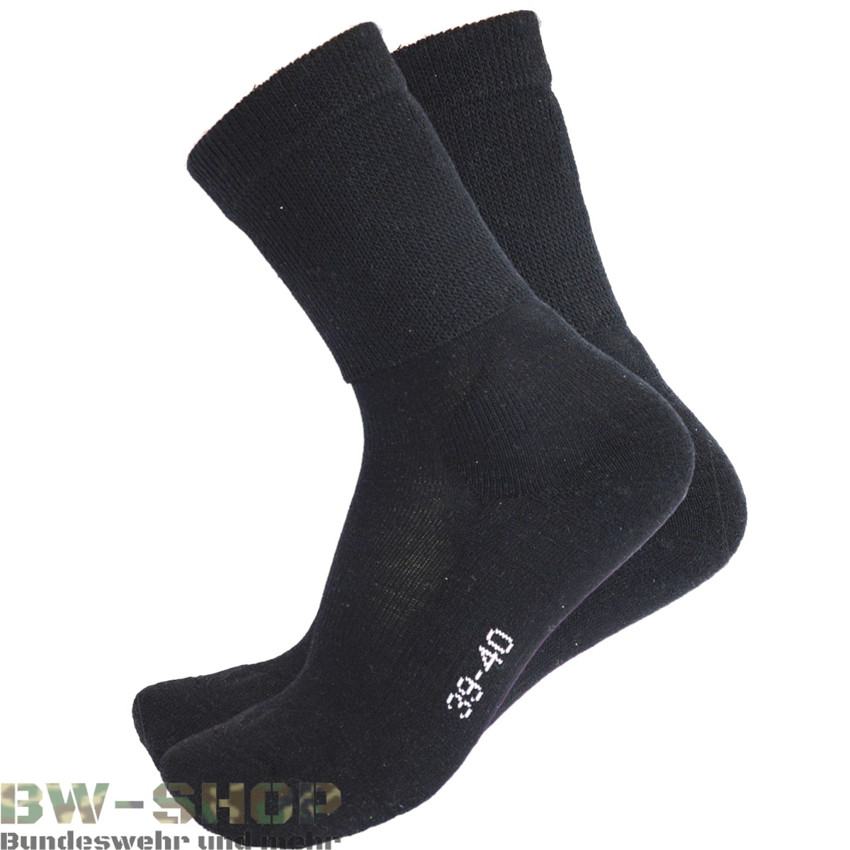 Die Multifunktionssocken in Schwarz sind das neue Modell und gleichzeitig der Nachfolger der bekannten Bundeswehr Socken in Oliv. Diese Socken wurden im Gegensatz zum alten Modell nochmal überarbeitet und besitzen eine bessere Materialzusammensetzung, bieten noch höheren Tragekomfort und wärmen noch intensiver Ihren Fuß durch das zusätzlich verarbeitete Frottee. Es handelt sich um Socken, die bis über den Knöchel gehen und den Fuß ideal vor Kälte im Winter schützen. Ebenfalls finden Sie bei uns das neue Modell der Langstrümpfe mit Frottee.