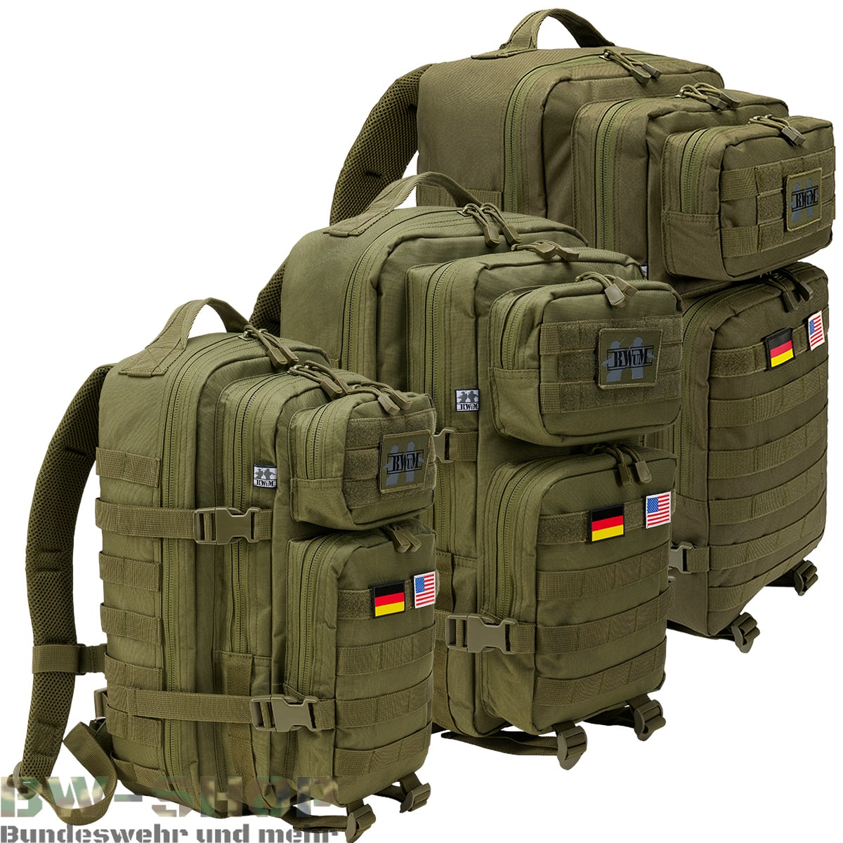 Nun können Ihre Outdoor Aktivitäten so richtig starten! Der Assault Pack der US Army ist ein funktioneller Rucksack, der zu allen Lebenslagen passt und bei jedermann bekannt ist. Das wählbare und geräumige Volumen mit 30L, 50L oder 70L trifft auf gute und robuste Qualität. Hinzu kommen viele Taschen und Befestigungsmöglichkeiten für Ausrüstung. Da solch ein Rucksack ein Muss für jeden Outdoor Liebhaber ist und auf keiner Survival Tour fehlen darf, haben wir den beliebten Assault Pack oder auch Cooper genannt, nun auch zu unserer Eigenmarke aufgenommen und produzieren lassen. Er wurde von uns überarbeitet und noch reißfester und robuster mit unseren Qualitätsangaben hergestellt. Dieser Assault Cooper besitzt nun einen verstellbaren Brustgurt und robustere Reverse-Reißverschlüsse. Außerdem haben wir durch zusätzliche Polsterung ein noch angenehmeres Tragegefühl geschaffen, damit auch bei hoher Last der Rucksack optimal getragen werden kann. Hinzu kommen die klettbaren Flaggen der USA und Deutschland und unser Logo Patch, die Sie variabel verwenden können oder Ihre eigenen Patches, Namensschilder oder andere Abzeichen problemlos durch Klett anbringen können. Hier erhalten Sie einen perfekten Rucksack für viele Zwecke unserer Eigenmarke BWuM (Bundeswehr-und-Mehr). Unsere Marke steht für Qualität, die Sie sicher nicht enttäuschen wird. Wir bieten Ihnen zu einem fairen Preis die bestmöglichen Produkte aus eigener Entwicklung.