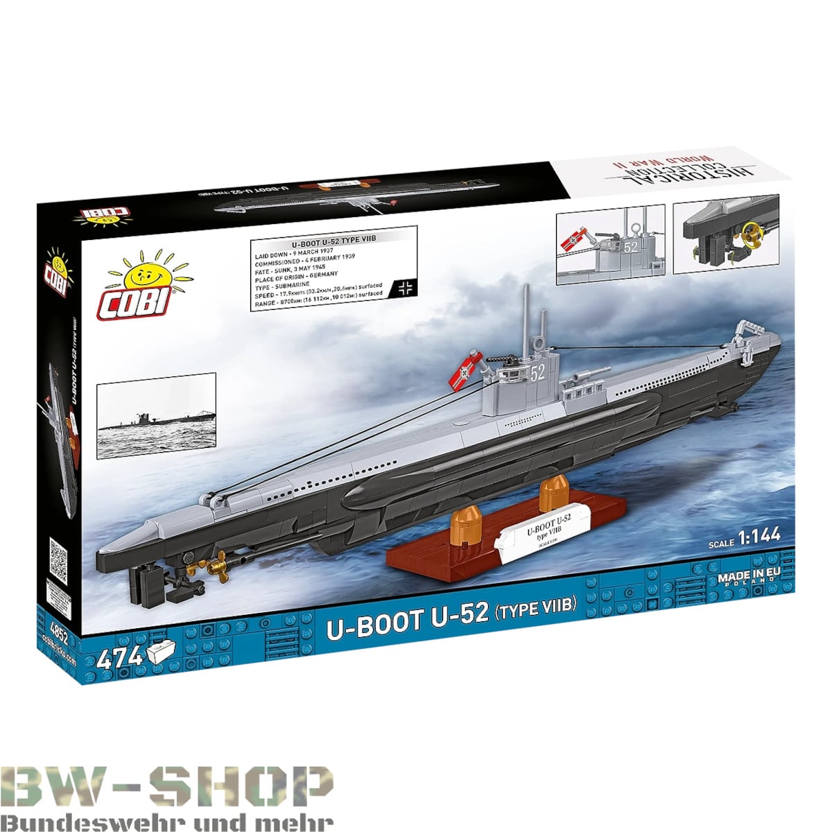 Cobi-4852 Klemmbausteine WW2 U-Boot U-52 (Typ VIIB)